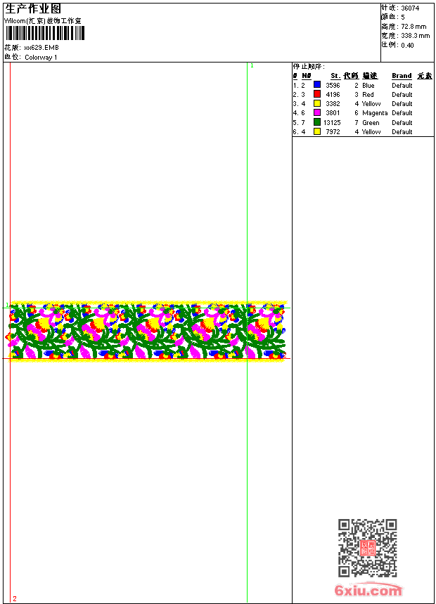 - emb花版参数: 大小:71.50 KB / 尺寸:338*73[毫米] / 针数:36074针 / 线色:5 / 格式:emb / 版本:9