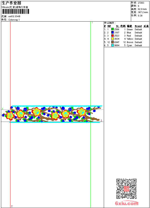 - emb花版参数: 大小:76.00 KB / 尺寸:367*63[毫米] / 针数:27263针 / 线色:6 / 格式:emb / 版本:9