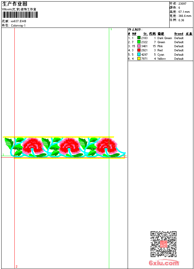- emb花版参数: 大小:51.00 KB / 尺寸:367*67[毫米] / 针数:23097针 / 线色:6 / 格式:emb / 版本:9