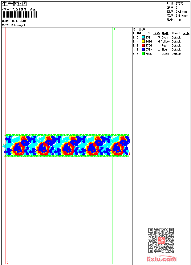 - emb花版参数: 大小:54.50 KB / 尺寸:340*60[毫米] / 针数:27277针 / 线色:5 / 格式:emb / 版本:9