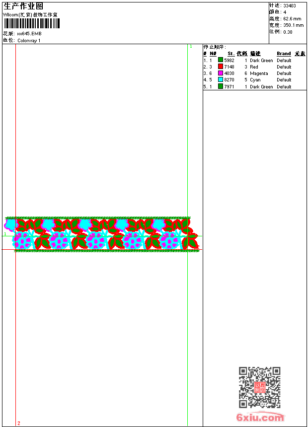 - emb花版参数: 大小:55.00 KB / 尺寸:350*63[毫米] / 针数:33403针 / 线色:4 / 格式:emb / 版本:9