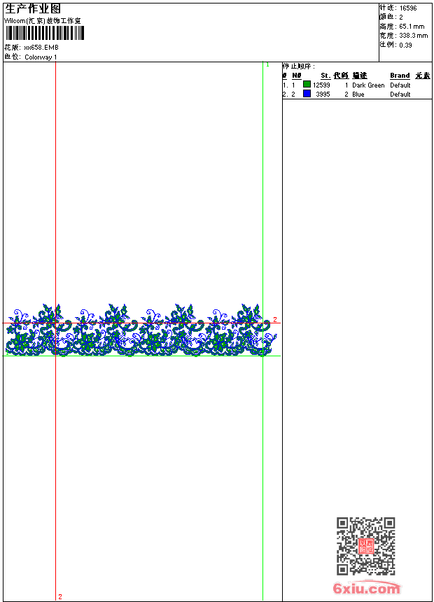 - emb花版参数: 大小:124.00 KB / 尺寸:338*65[毫米] / 针数:16596针 / 线色:2 / 格式:emb / 版本:9