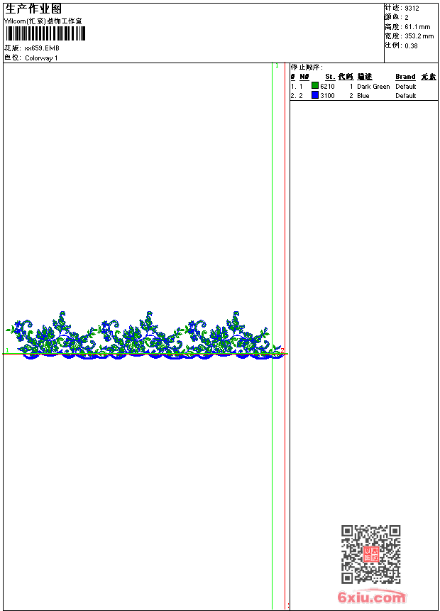 - 版带文件需绣花软件方可打开,可配色打印导出各种格式或直接上机绣。如无绣花软件可下载1:1模拟效果图。