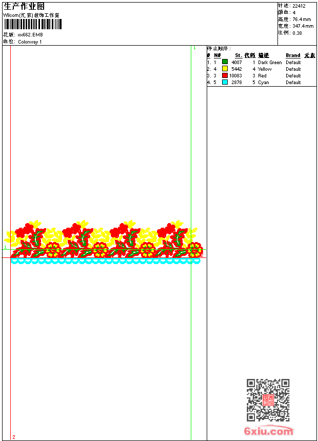 - emb花版参数: 大小:63.00 KB / 尺寸:347*76[毫米] / 针数:22412针 / 线色:4 / 格式:emb / 版本:9