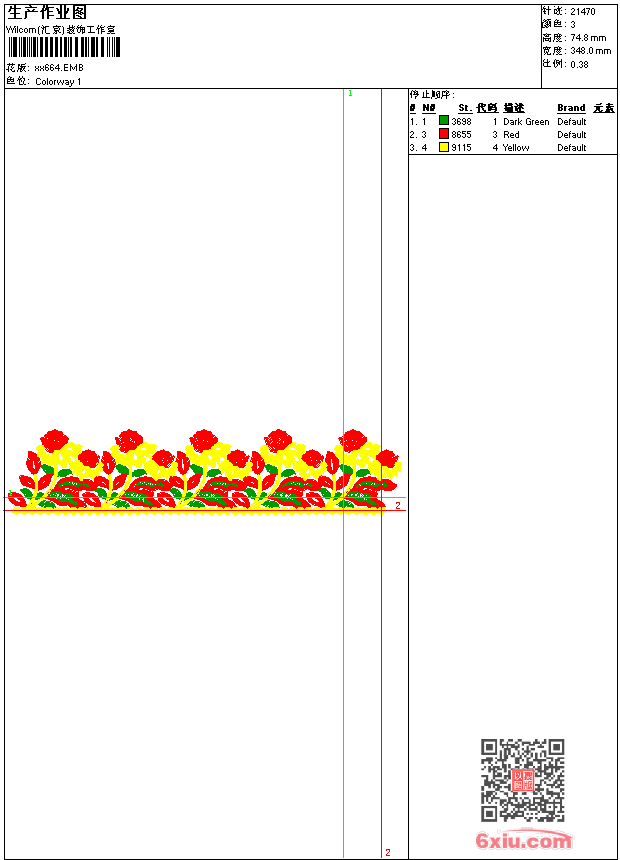 - emb花版参数: 大小:55.00 KB / 尺寸:348*75[毫米] / 针数:21470针 / 线色:3 / 格式:emb / 版本:9
