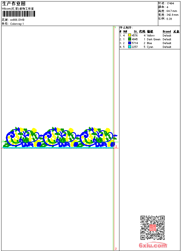- emb花版参数: 大小:73.00 KB / 尺寸:343*65[毫米] / 针数:17494针 / 线色:4 / 格式:emb / 版本:9