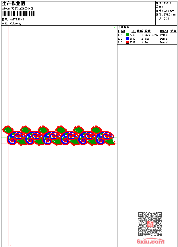 - emb花版参数: 大小:56.00 KB / 尺寸:351*62[毫米] / 针数:23318针 / 线色:3 / 格式:emb / 版本:9