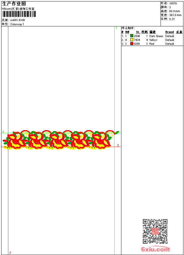 - emb花版参数: 大小:51.50 KB / 尺寸:364*61[毫米] / 针数:18570针 / 线色:3 / 格式:emb / 版本:9