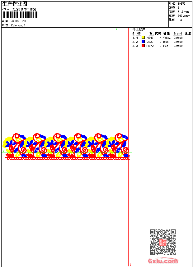 - emb花版参数: 大小:49.00 KB / 尺寸:342*71[毫米] / 针数:19652针 / 线色:3 / 格式:emb / 版本:9