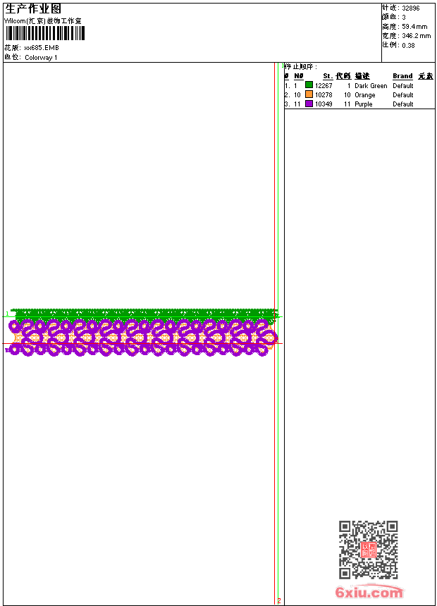 - emb花版参数: 大小:181.00 KB / 尺寸:346*59[毫米] / 针数:32896针 / 线色:3 / 格式:emb / 版本:9