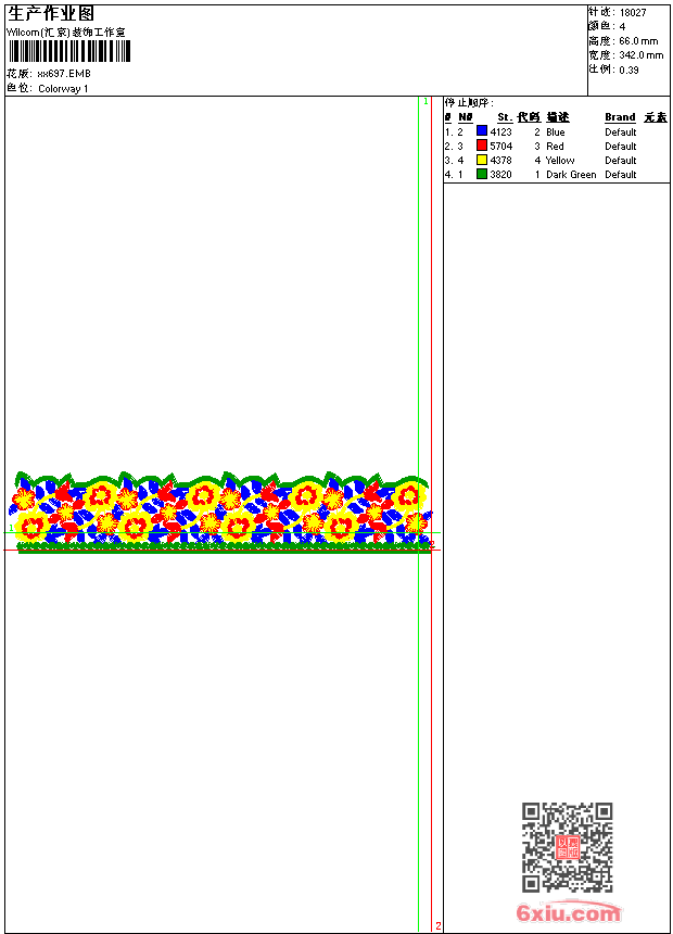 - emb花版参数: 大小:51.50 KB / 尺寸:342*66[毫米] / 针数:18027针 / 线色:4 / 格式:emb / 版本:9