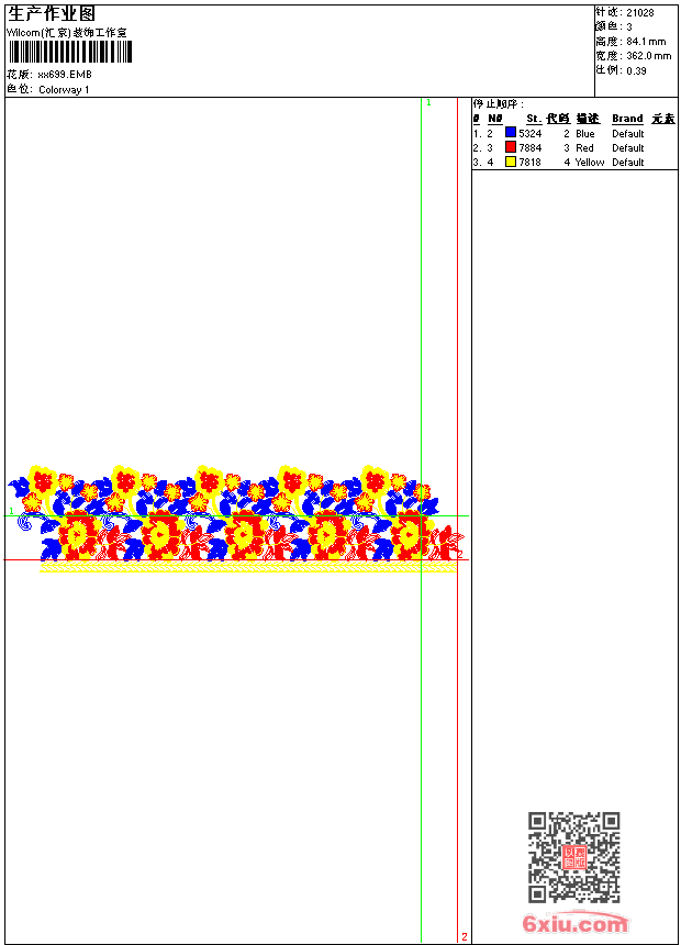 - emb花版参数: 大小:58.00 KB / 尺寸:362*84[毫米] / 针数:21028针 / 线色:3 / 格式:emb / 版本:9