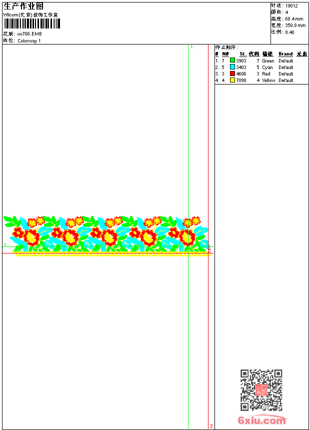 - emb花版参数: 大小:51.00 KB / 尺寸:351*68[毫米] / 针数:19012针 / 线色:4 / 格式:emb / 版本:9