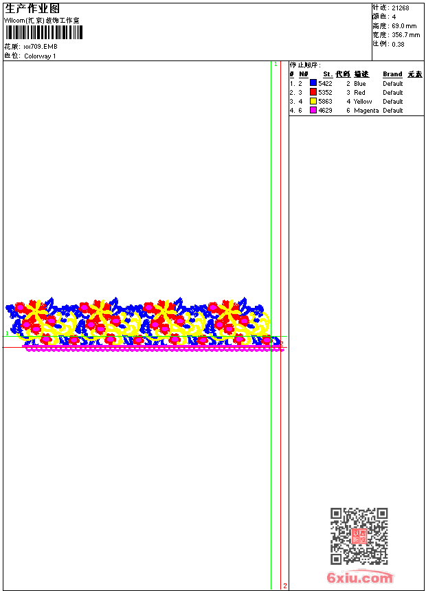 - emb花版参数: 大小:55.50 KB / 尺寸:357*69[毫米] / 针数:21268针 / 线色:4 / 格式:emb / 版本:9