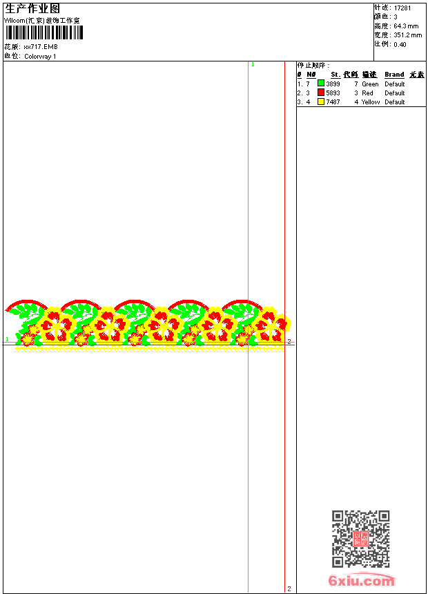 - emb花版参数: 大小:52.50 KB / 尺寸:351*64[毫米] / 针数:17281针 / 线色:3 / 格式:emb / 版本:9