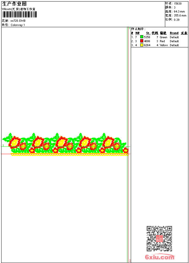 - emb花版参数: 大小:41.00 KB / 尺寸:356*64[毫米] / 针数:15630针 / 线色:3 / 格式:emb / 版本:9