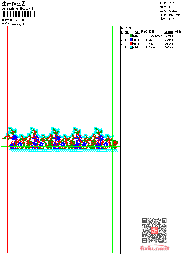 - emb花版参数: 大小:54.50 KB / 尺寸:357*74[毫米] / 针数:20802针 / 线色:4 / 格式:emb / 版本:9
