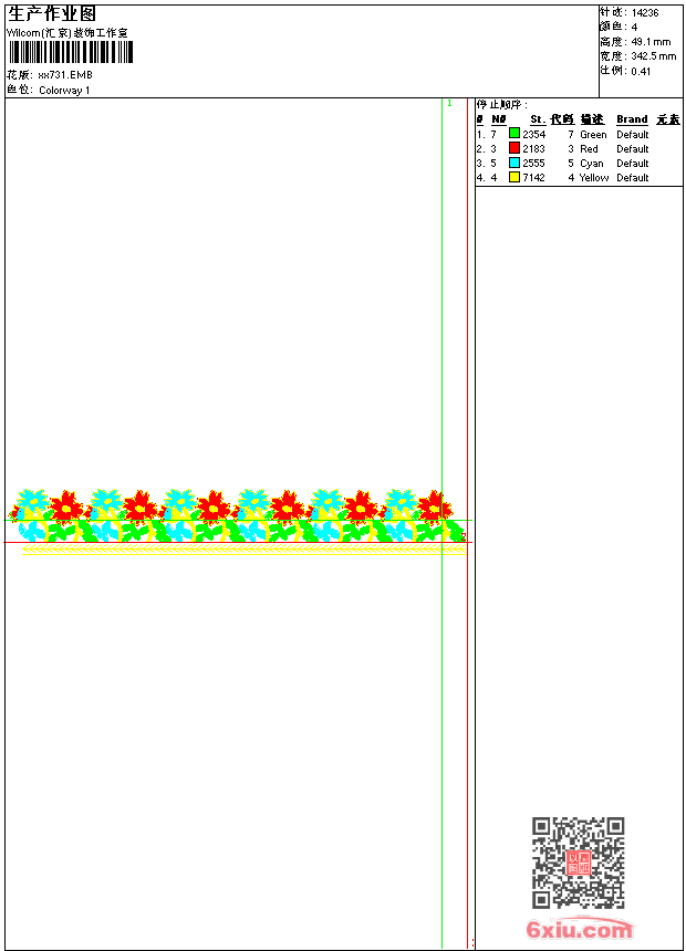 - emb花版参数: 大小:48.50 KB / 尺寸:343*49[毫米] / 针数:14236针 / 线色:4 / 格式:emb / 版本:9