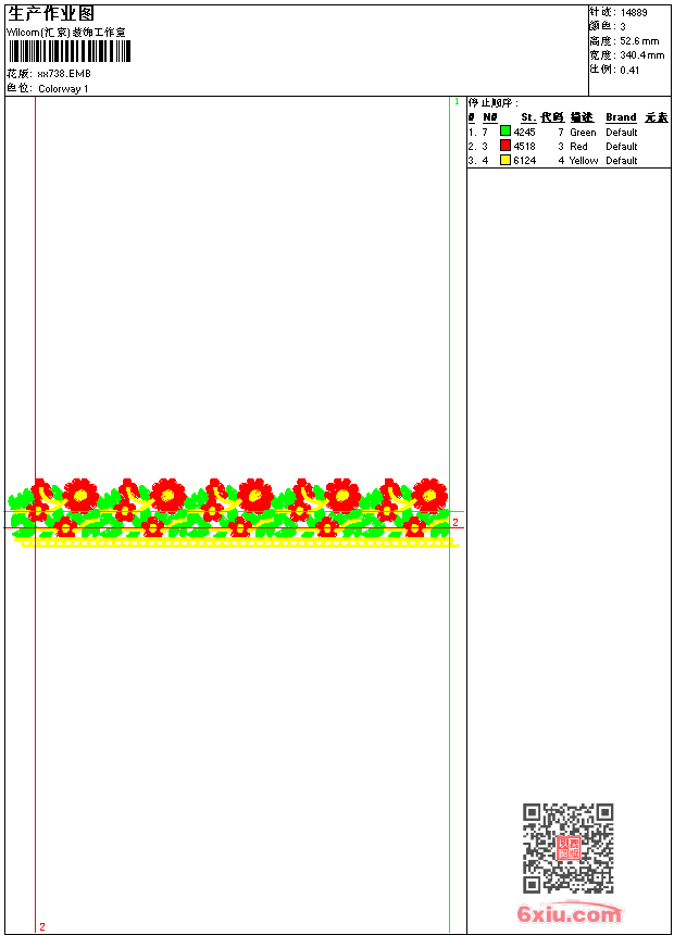 - emb花版参数: 大小:46.00 KB / 尺寸:340*53[毫米] / 针数:14889针 / 线色:3 / 格式:emb / 版本:9