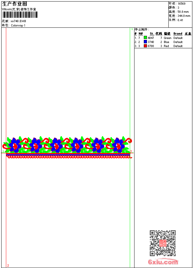 - emb花版参数: 大小:40.00 KB / 尺寸:345*59[毫米] / 针数:16569针 / 线色:3 / 格式:emb / 版本:9