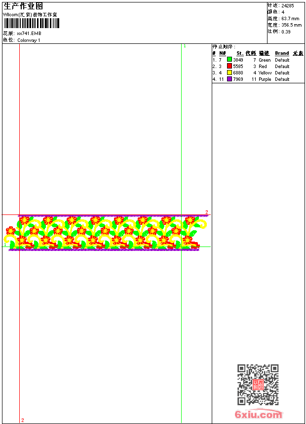 - emb花版参数: 大小:39.50 KB / 尺寸:356*64[毫米] / 针数:24285针 / 线色:4 / 格式:emb / 版本:9