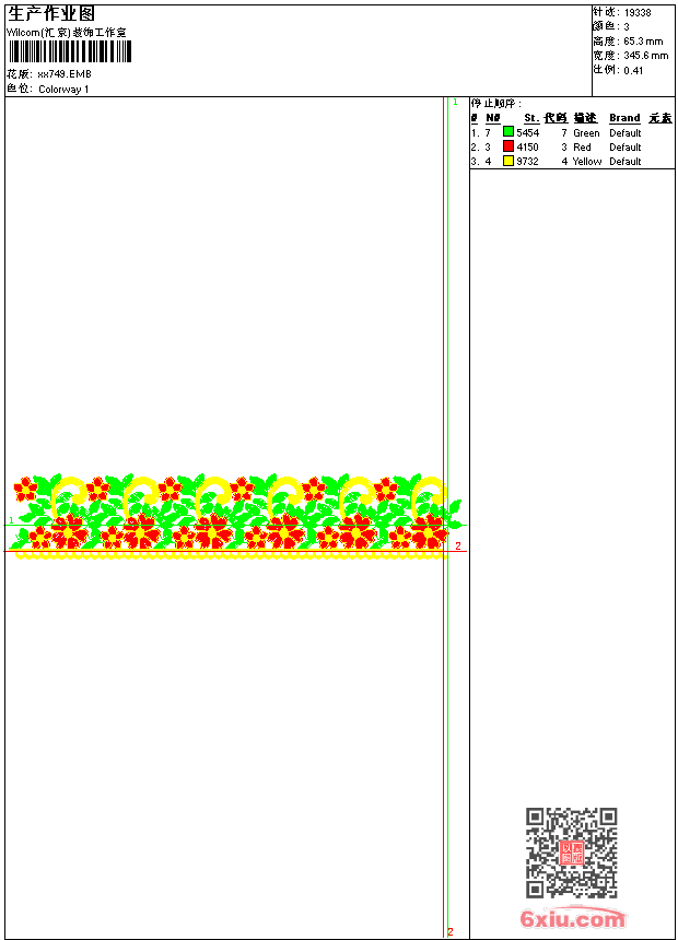- emb花版参数: 大小:52.00 KB / 尺寸:346*65[毫米] / 针数:19338针 / 线色:3 / 格式:emb / 版本:9