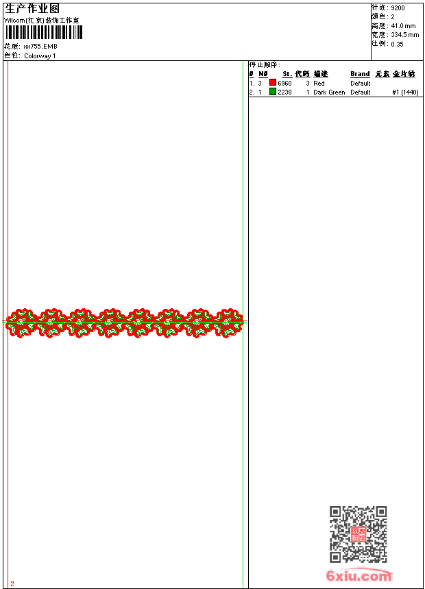 - emb花版参数: 大小:248.50 KB / 尺寸:335*41[毫米] / 针数:9200针 / 线色:2 / 格式:emb / 版本:9