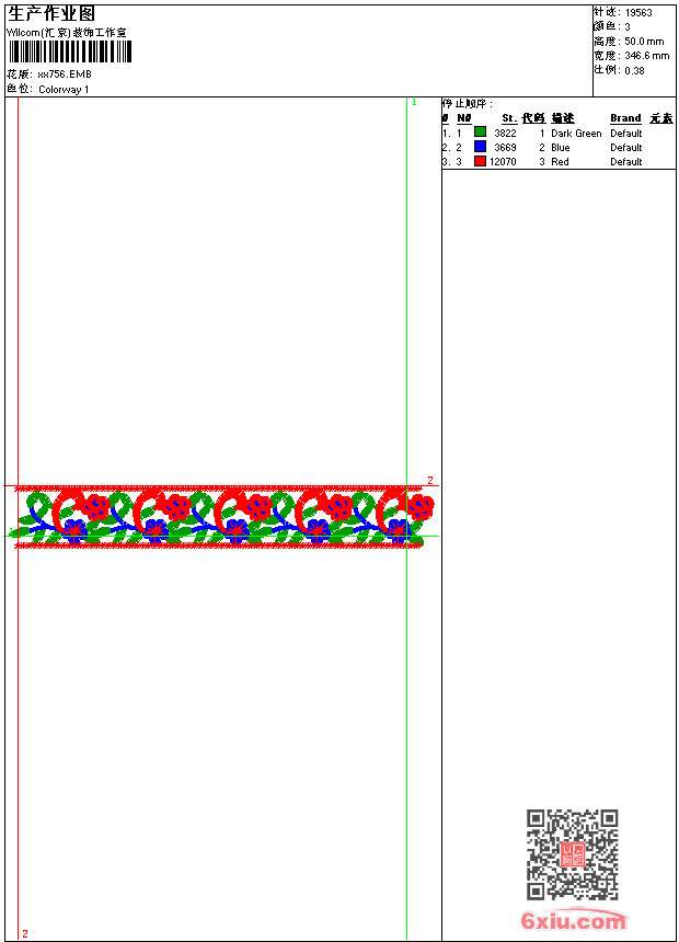 - emb花版参数: 大小:37.00 KB / 尺寸:347*50[毫米] / 针数:19563针 / 线色:3 / 格式:emb / 版本:9