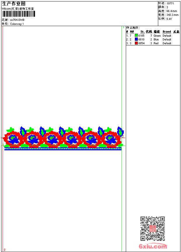 - emb花版参数: 大小:48.50 KB / 尺寸:343*66[毫米] / 针数:19771针 / 线色:3 / 格式:emb / 版本:9