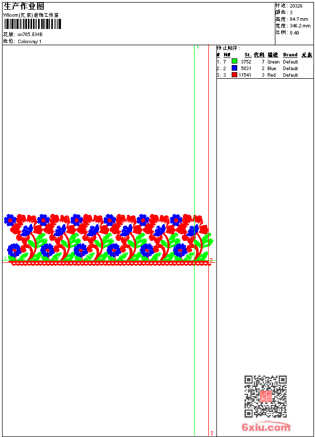 - emb花版参数: 大小:44.00 KB / 尺寸:346*85[毫米] / 针数:20326针 / 线色:3 / 格式:emb / 版本:9