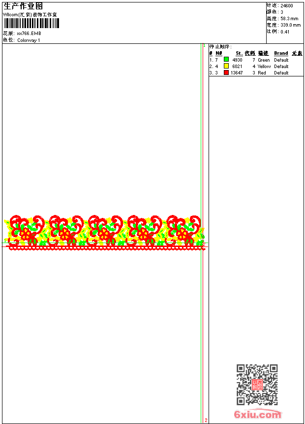 - emb花版参数: 大小:60.00 KB / 尺寸:339*58[毫米] / 针数:24600针 / 线色:3 / 格式:emb / 版本:9