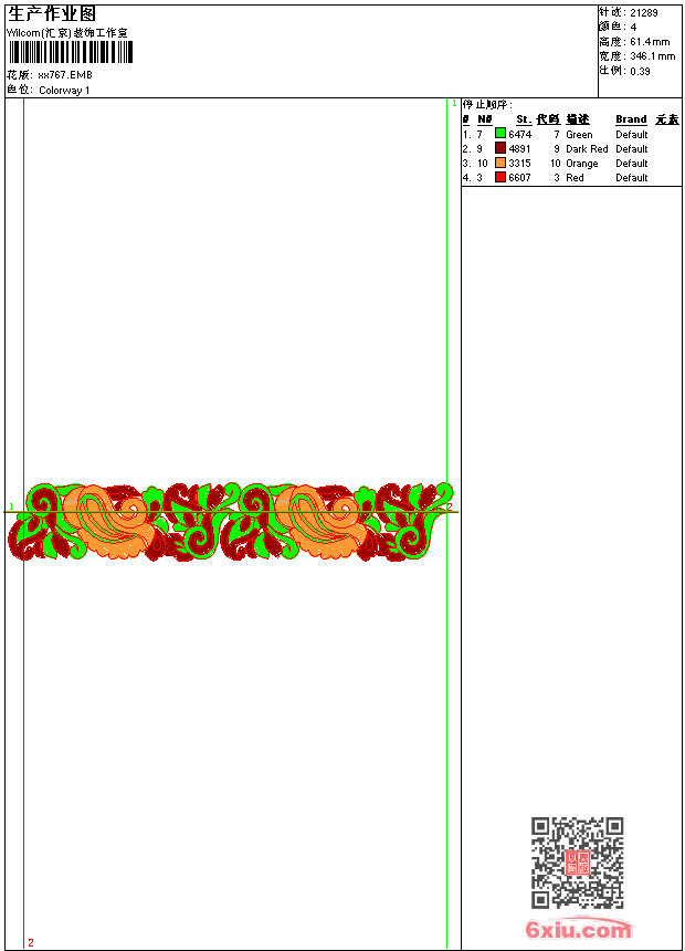 - emb花版参数: 大小:66.50 KB / 尺寸:346*61[毫米] / 针数:21289针 / 线色:4 / 格式:emb / 版本:9