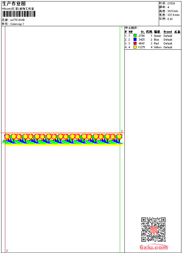 - emb花版参数: 大小:35.00 KB / 尺寸:338*35[毫米] / 针数:21539针 / 线色:4 / 格式:emb / 版本:9