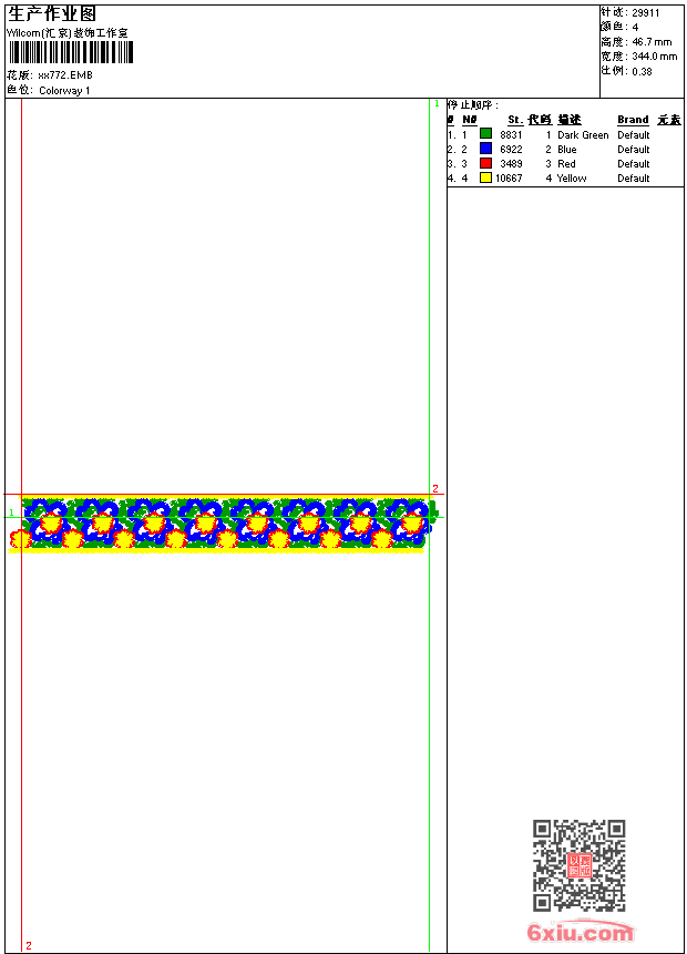 - emb花版参数: 大小:53.00 KB / 尺寸:344*47[毫米] / 针数:29911针 / 线色:4 / 格式:emb / 版本:9