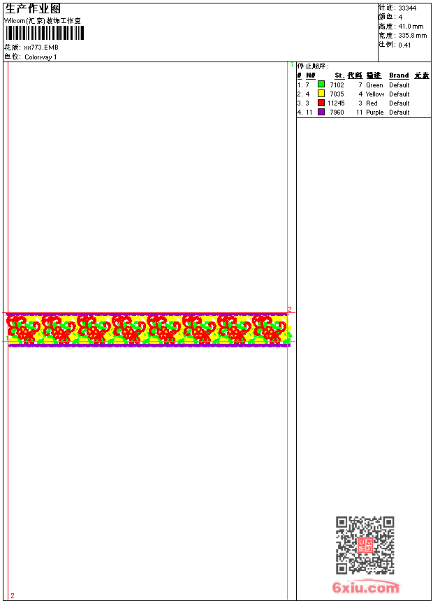 - emb花版参数: 大小:58.50 KB / 尺寸:336*41[毫米] / 针数:33344针 / 线色:4 / 格式:emb / 版本:9