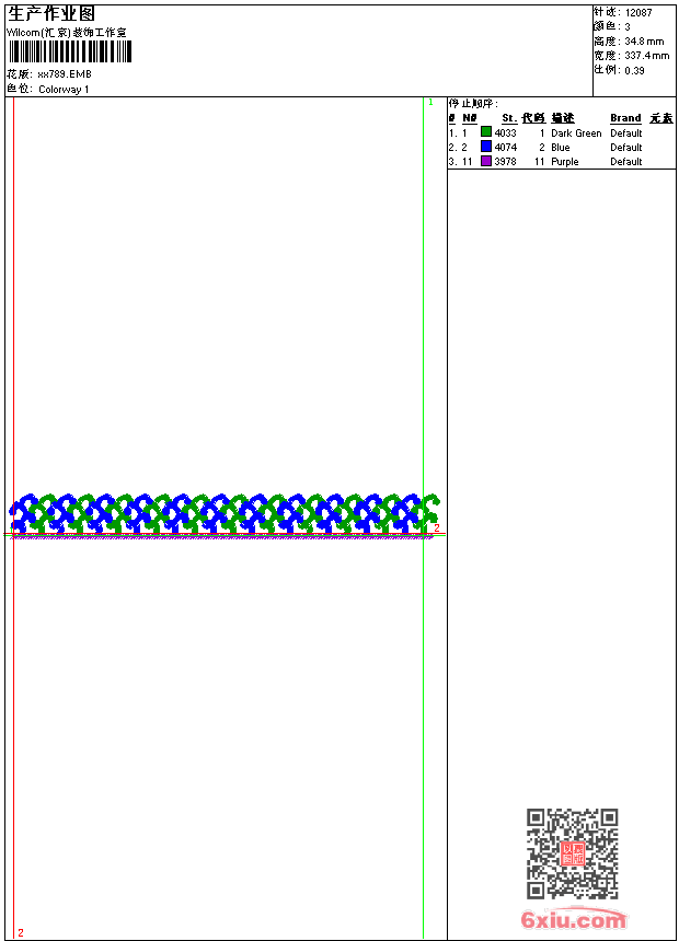 - emb花版参数: 大小:24.00 KB / 尺寸:337*35[毫米] / 针数:12087针 / 线色:3 / 格式:emb / 版本:9