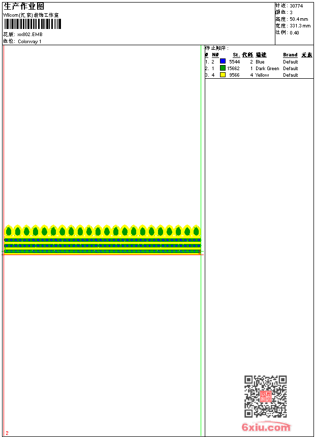 - emb花版参数: 大小:45.50 KB / 尺寸:331*50[毫米] / 针数:30774针 / 线色:3 / 格式:emb / 版本:9