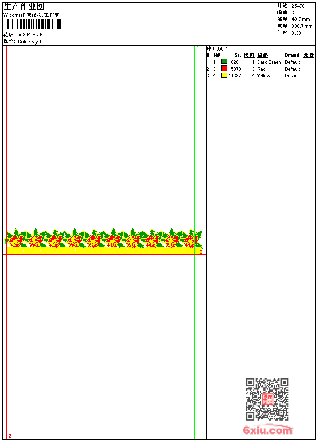 - emb花版参数: 大小:66.00 KB / 尺寸:337*44[毫米] / 针数:25478针 / 线色:3 / 格式:emb / 版本:9