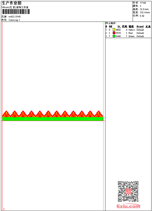 - emb花版参数: 大小:51.00 KB / 尺寸:332*33[毫米] / 针数:17106针 / 线色:3 / 格式:emb / 版本:9