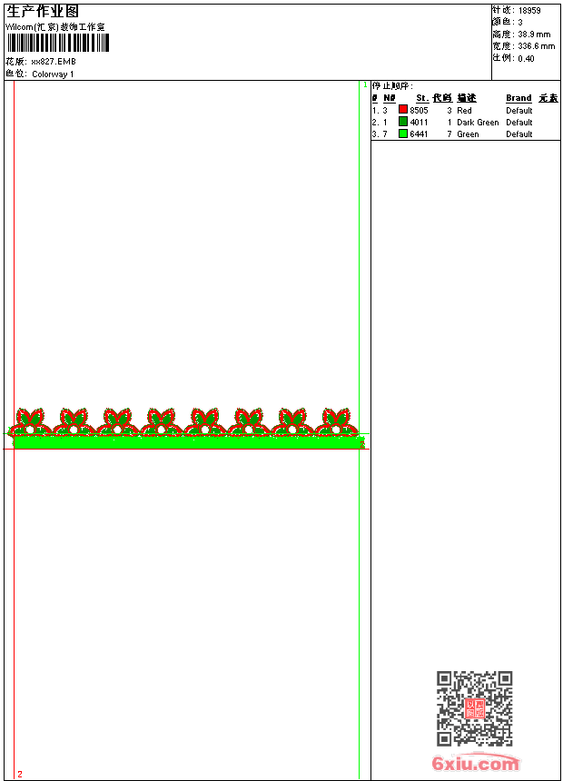 - emb花版参数: 大小:46.00 KB / 尺寸:337*39[毫米] / 针数:18959针 / 线色:3 / 格式:emb / 版本:9