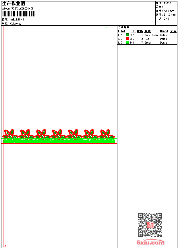 - emb花版参数: 大小:58.50 KB / 尺寸:334*43[毫米] / 针数:23832针 / 线色:3 / 格式:emb / 版本:9
