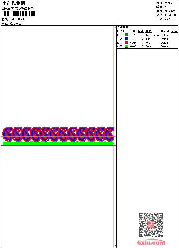 - emb花版参数: 大小:55.00 KB / 尺寸:335*56[毫米] / 针数:35529针 / 线色:4 / 格式:emb / 版本:9
