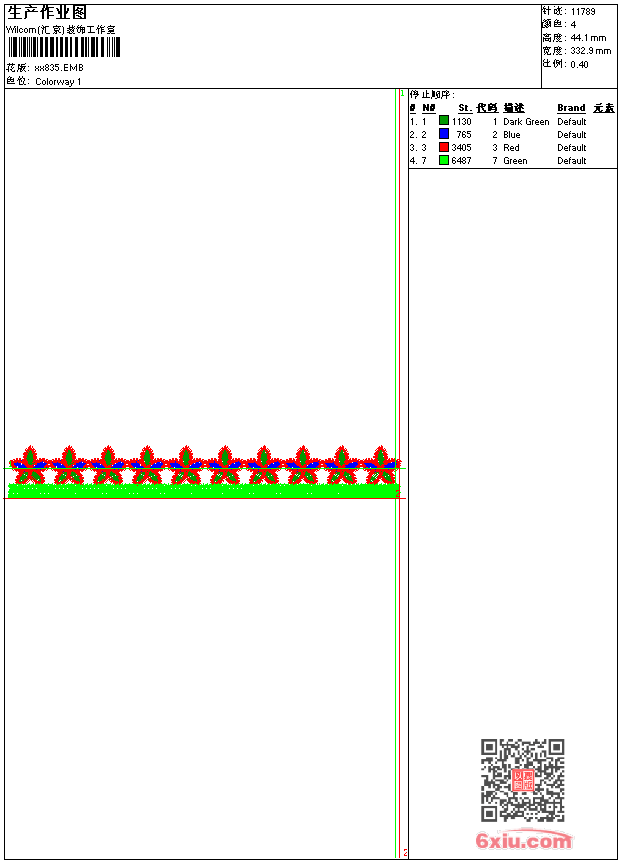 - emb花版参数: 大小:45.50 KB / 尺寸:333*44[毫米] / 针数:11789针 / 线色:4 / 格式:emb / 版本:9