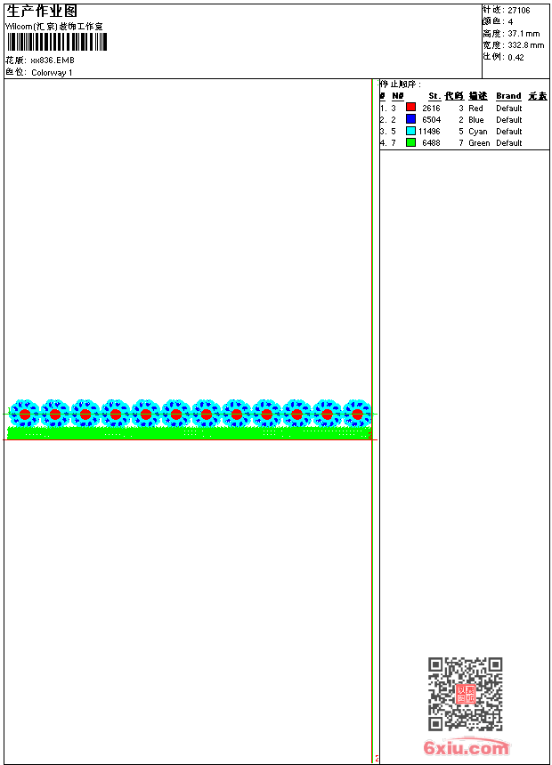 - emb花版参数: 大小:59.50 KB / 尺寸:333*37[毫米] / 针数:27106针 / 线色:4 / 格式:emb / 版本:9