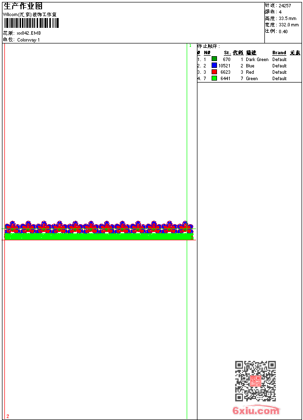 - emb花版参数: 大小:50.50 KB / 尺寸:332*33[毫米] / 针数:24257针 / 线色:4 / 格式:emb / 版本:9
