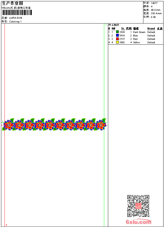 - emb花版参数: 大小:35.50 KB / 尺寸:336*40[毫米] / 针数:14077针 / 线色:4 / 格式:emb / 版本:9