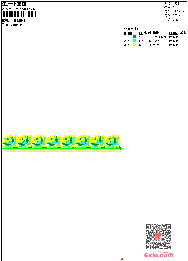 - emb花版参数: 大小:41.00 KB / 尺寸:336*49[毫米] / 针数:17233针 / 线色:3 / 格式:emb / 版本:9