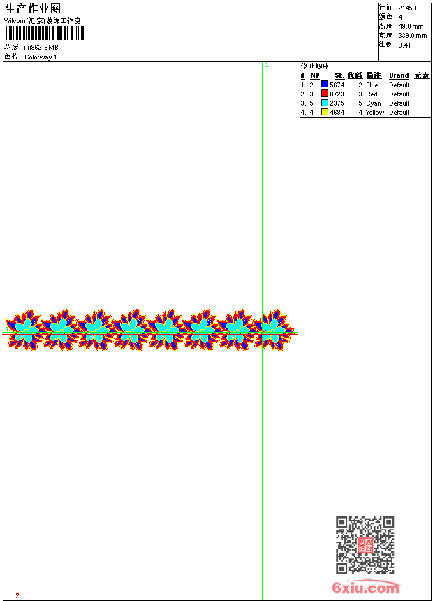 - emb花版参数: 大小:44.50 KB / 尺寸:339*49[毫米] / 针数:21458针 / 线色:4 / 格式:emb / 版本:9