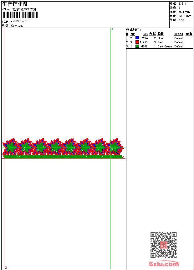 - emb花版参数: 大小:43.50 KB / 尺寸:339*56[毫米] / 针数:23211针 / 线色:3 / 格式:emb / 版本:9