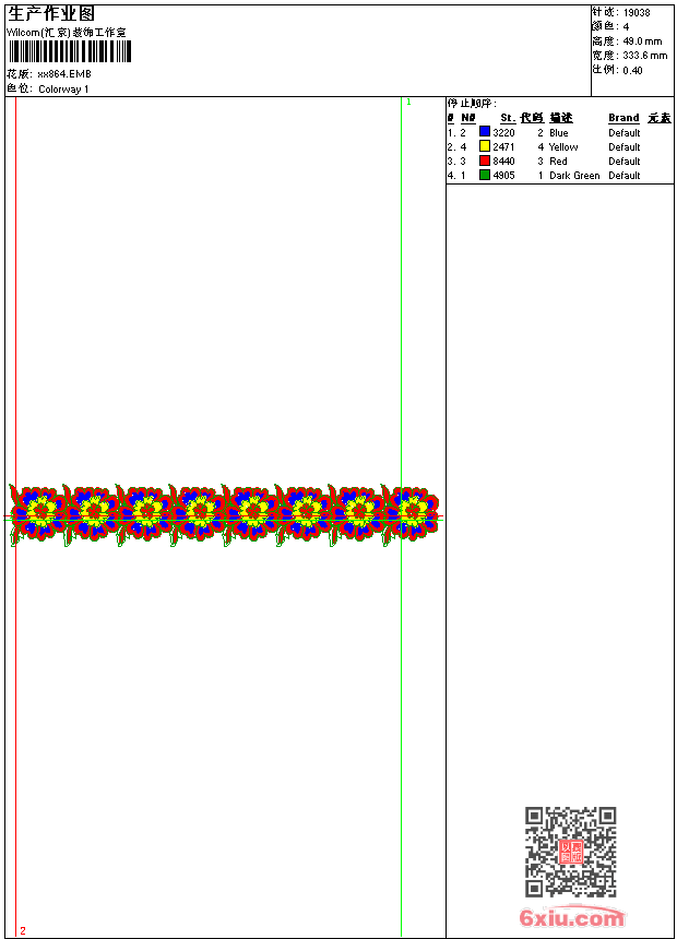 - emb花版参数: 大小:41.00 KB / 尺寸:334*49[毫米] / 针数:19038针 / 线色:4 / 格式:emb / 版本:9